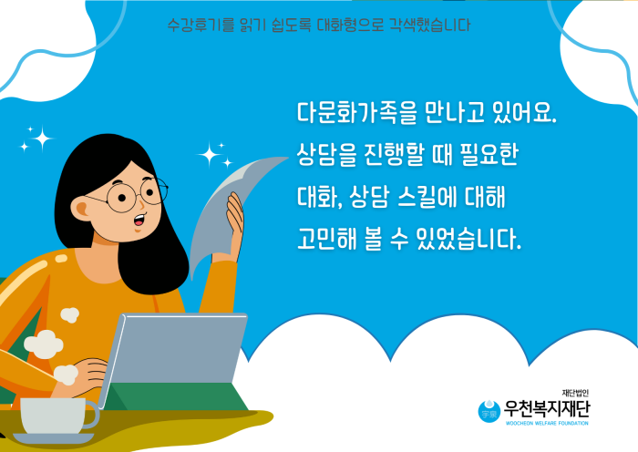 다문화가족을 만나고 있어요. 상담을 진행할 때 필요한