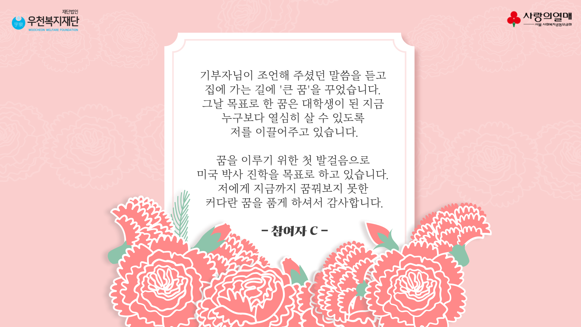 이에 참여자들이 재단과 기부자님께 감사 편지를 보내왔습니다.