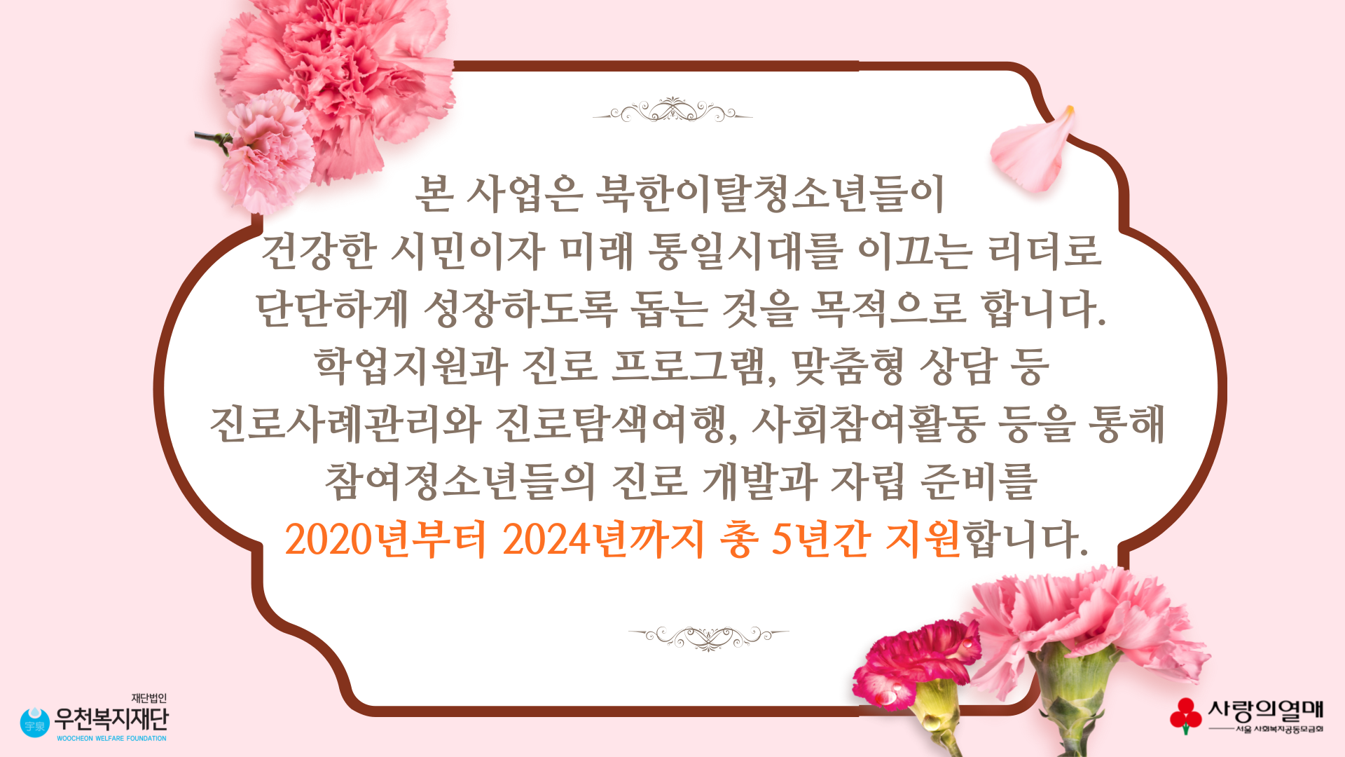우천복지재단은 탈북청소년들의 진로개발과 자립 준비를 위해