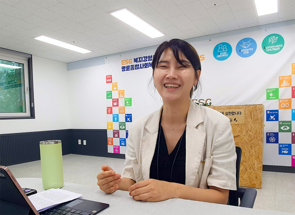 안녕하세요. 명륜종합사회복지관에서 지속가능실천과 과장을 맡고 있는 최미정입니다. 저희 지속가능실천과는 지역 조직화 사업을 중심으로, ESG 협업 사업이나 SDGs 목표 이행을 위한 직원 교육 등을 함께 담당하고 있습니다.